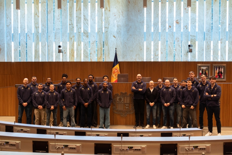 Com a punt final de la visita, la delegació del BC MoraBanc Andorra ha pogut entrar a l’hemicicle del Consell General, l’actual seu del poder legislatiu del país, en un moment que ha permès contrastar passat i present de les institucions andorranes. La jornada ha comptat també amb una fotografia de família a l’exterior de la Casa de la Vall, símbol d’una trobada entre esport, història i identitat.