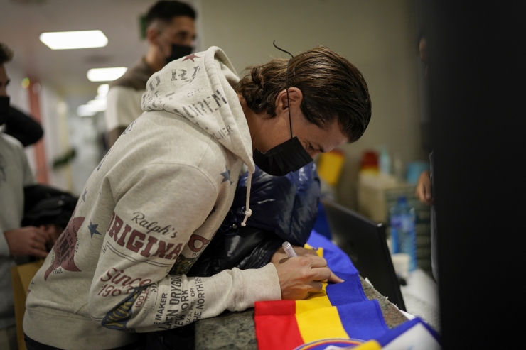 Andorra la Vella.- Una representació de la primera plantilla del FC Andorra, integrada pels futbolistes Rubén Bover, Martí Vilà, Oier Olazabal i Álex Calvo, ha visitat present a l'Hospital Nostra Senyora de Meritxell en la tradicional visita del club tricolor en aquestes dates. Els jugadors han visitat la planta de salut mental i la de pediatria per desitjar unes bones festes u han repartit regals, tot xerrant amb els més petits.